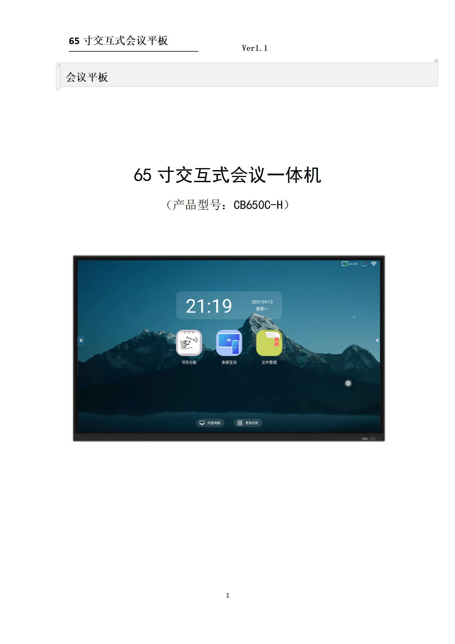 H6款65寸交互式会议平板(FT99)