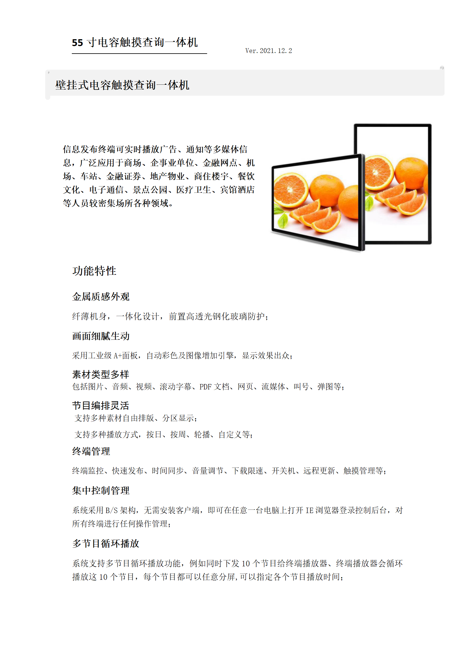 55寸壁挂电容触摸广告机
