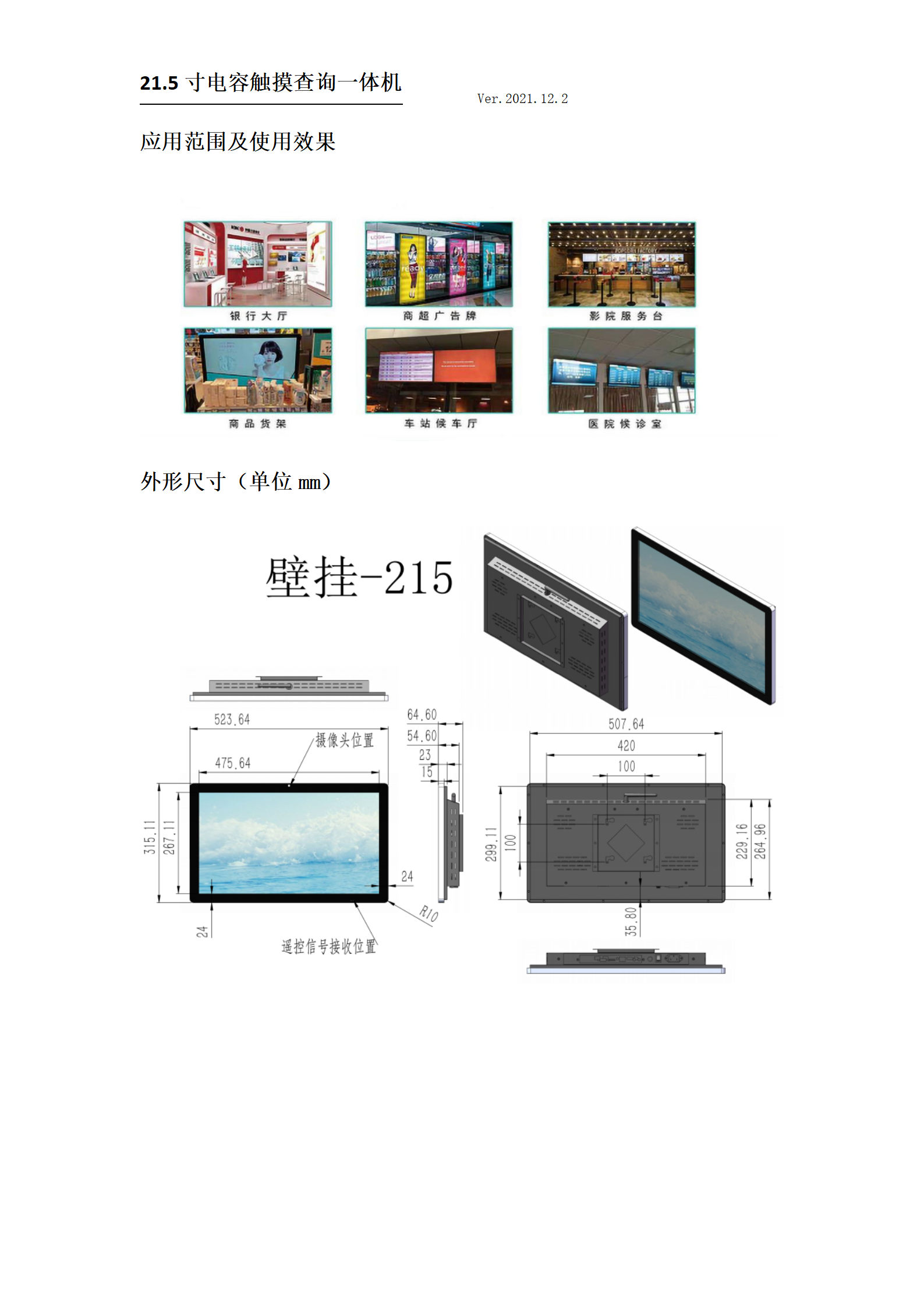 21.5寸壁挂电容触摸广告机